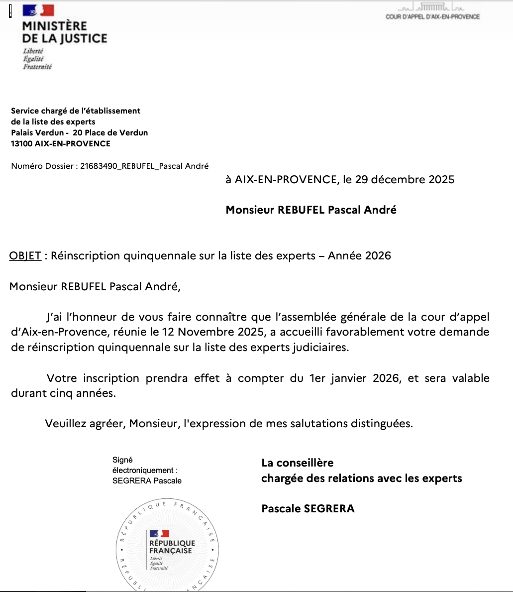 - Expert près la Cour d'Appel d'Aix en Provence et la Cour Administrative d’Appel de Marseille